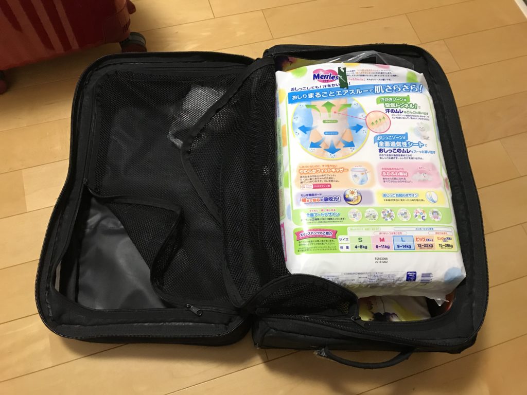 事前に調べた情報によると、現地でも日本製のオムツを購入できるとのことでしたが、買いに行けるか分からなかったので、日数分持っていきました。